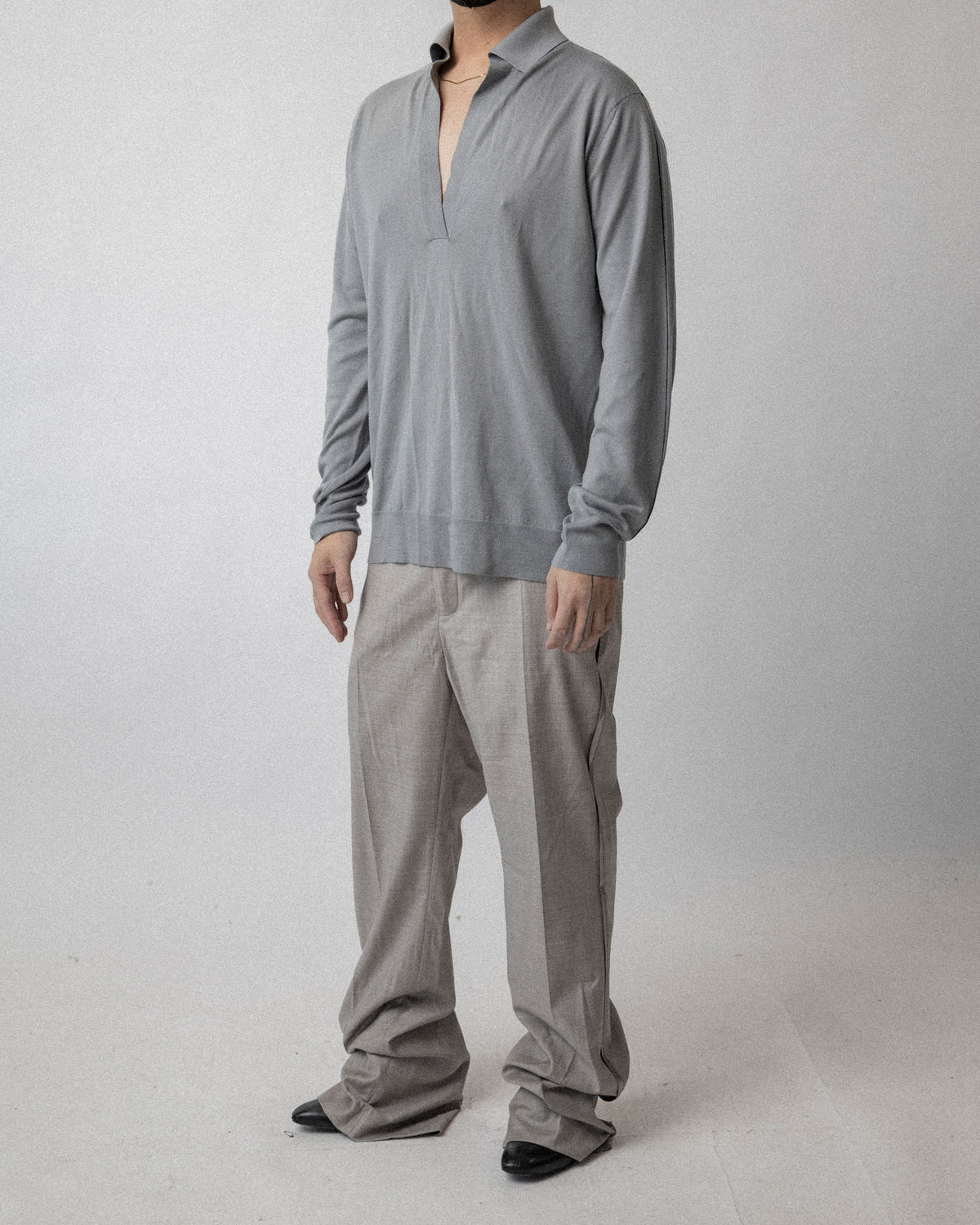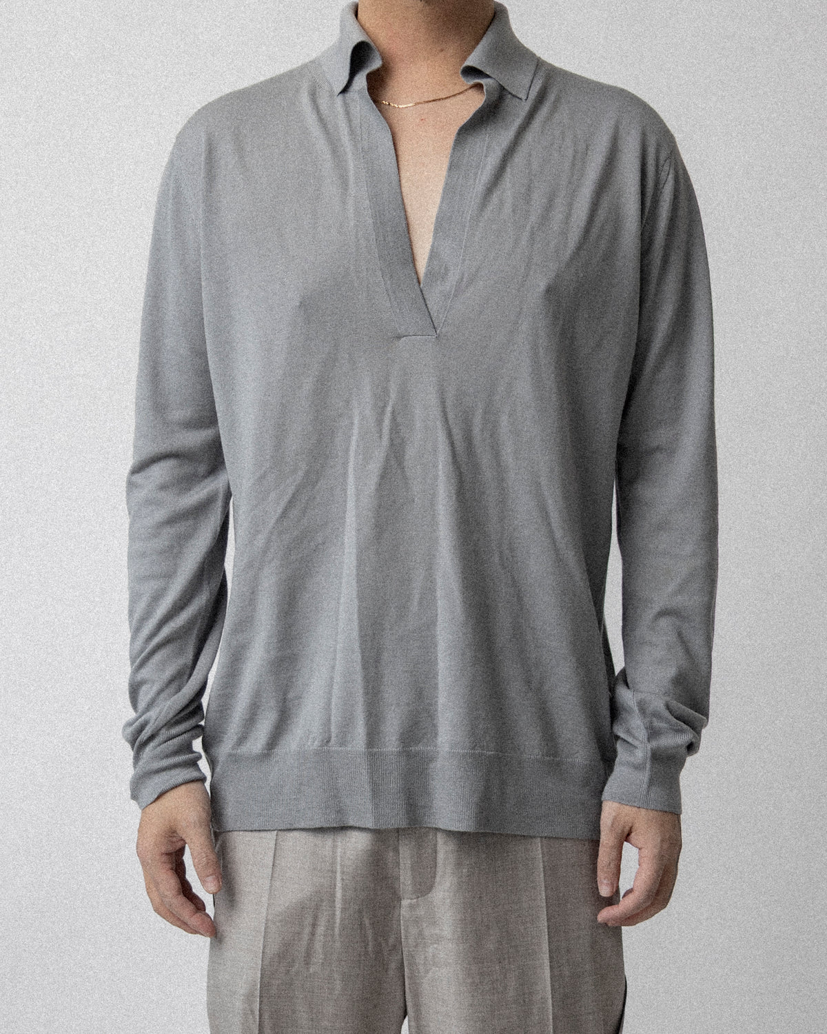 Knit Polo Gray in Cashmere wool silk - Cross shoulder 19.5''