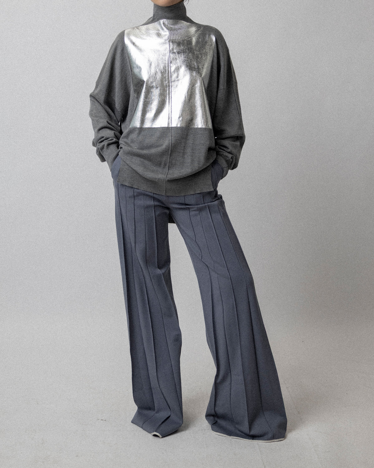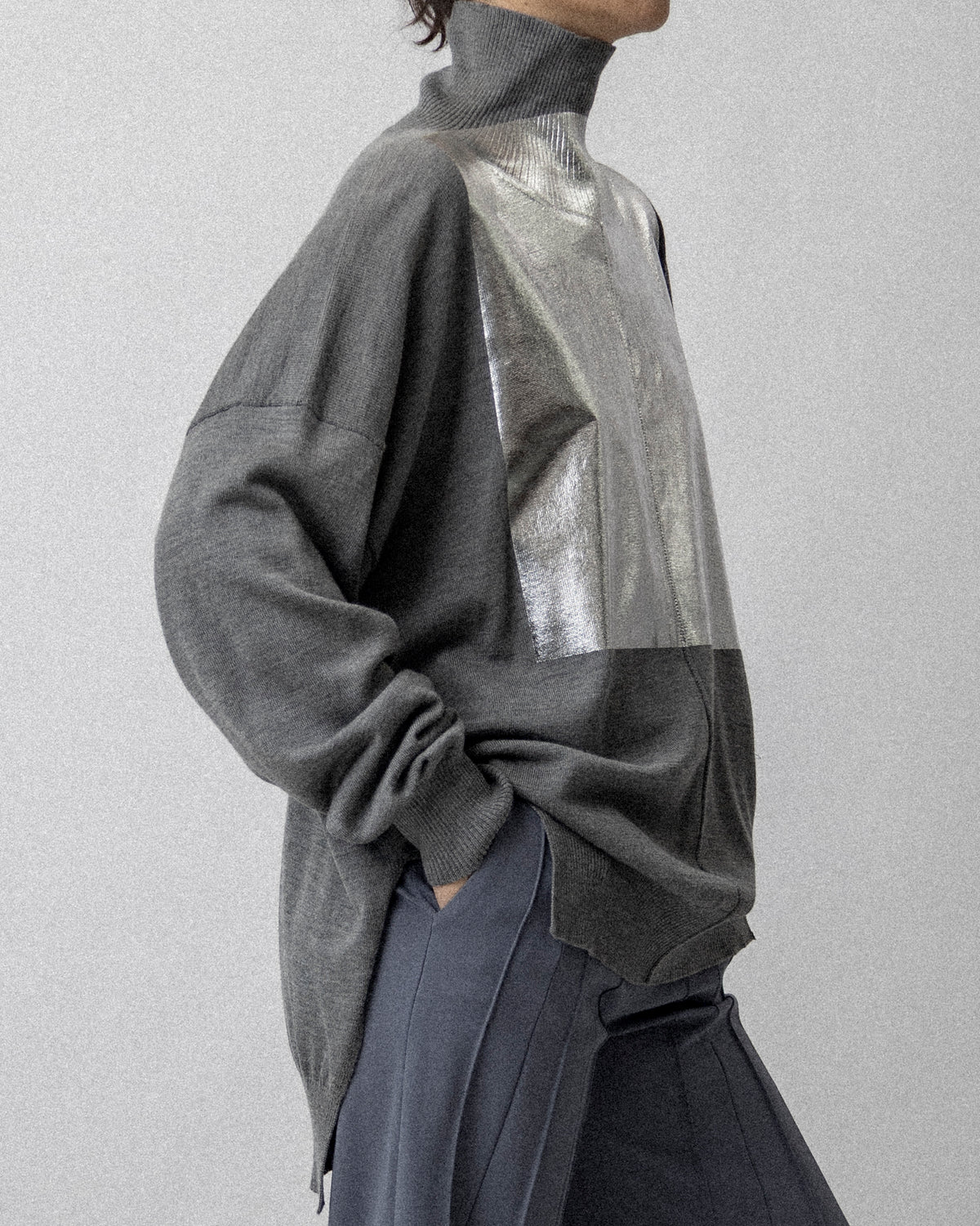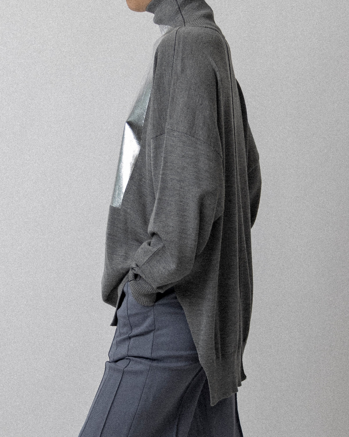 FOILED Peter Sweater Gray - wool cashmere - Cross Shoulder 30''