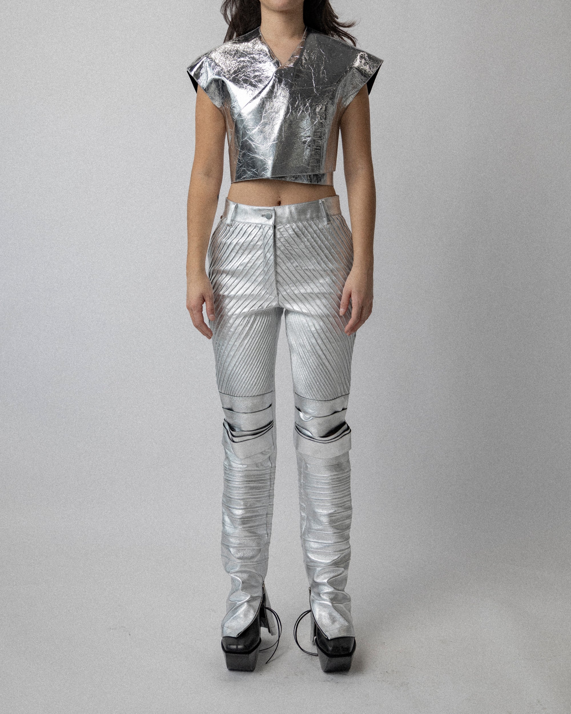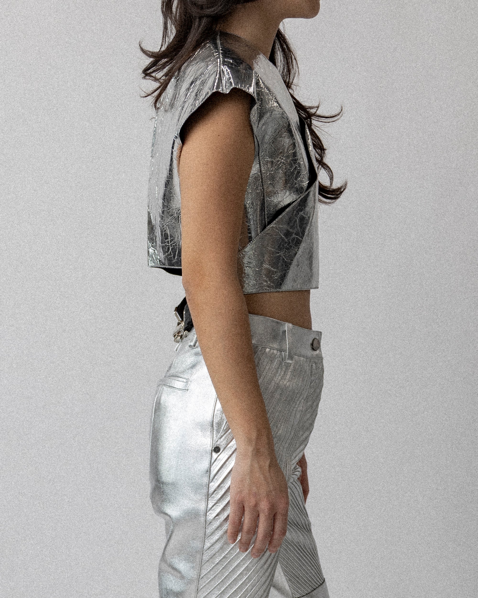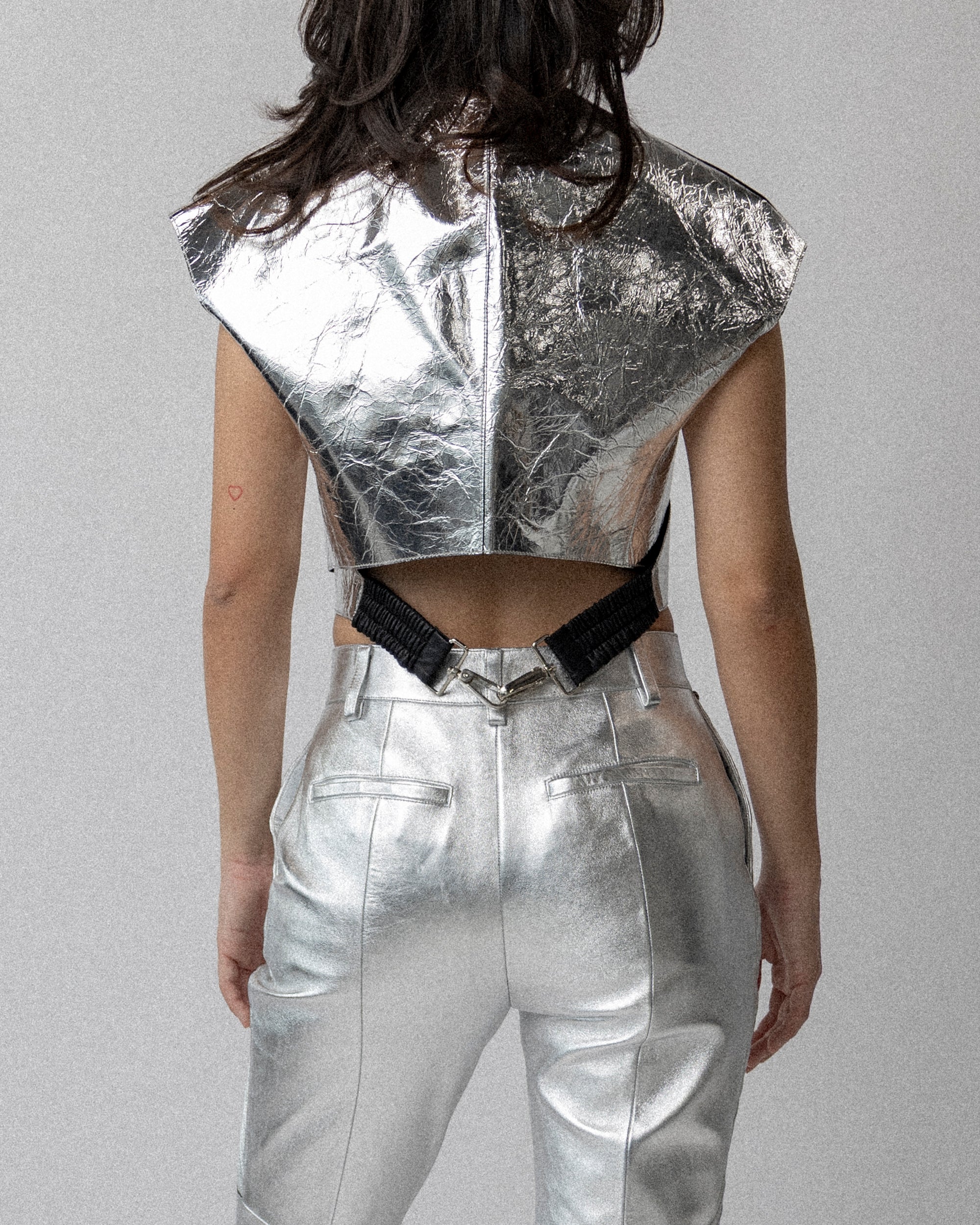 Silver leather Wrap Top S-M